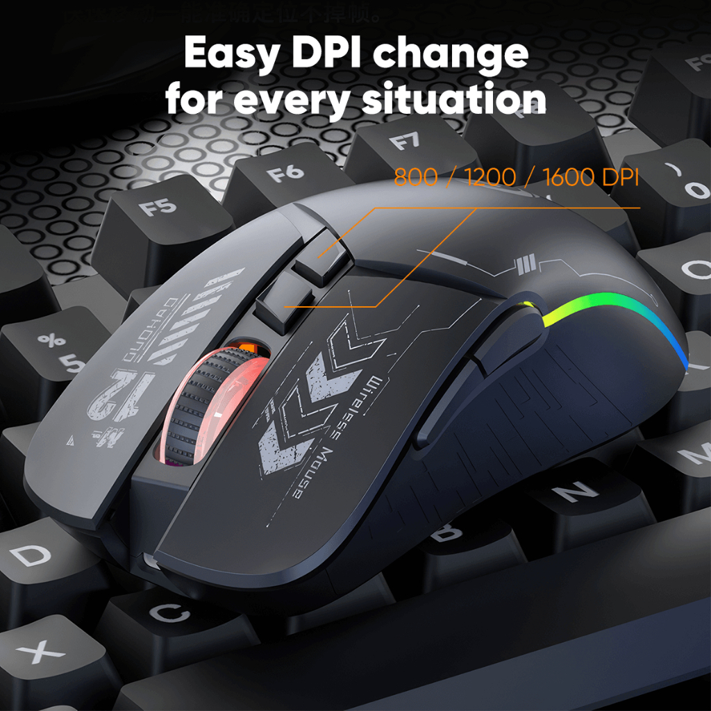 Gaming Mouse Wireless 2.4G RGB Lights Rechargeable Baterai